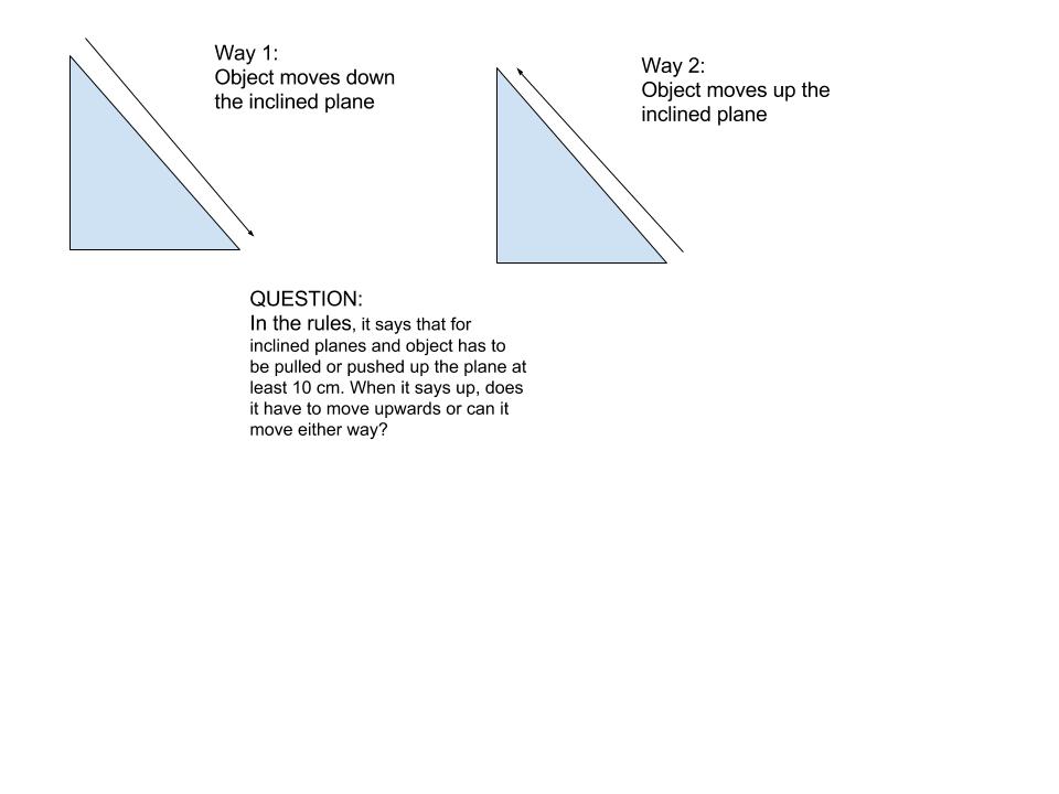 In the rules, it says that for inclined planes and object has to be pulled or pushed up the plane at least 10 cm. When it says up, does it have to move upwards or can it move either way?