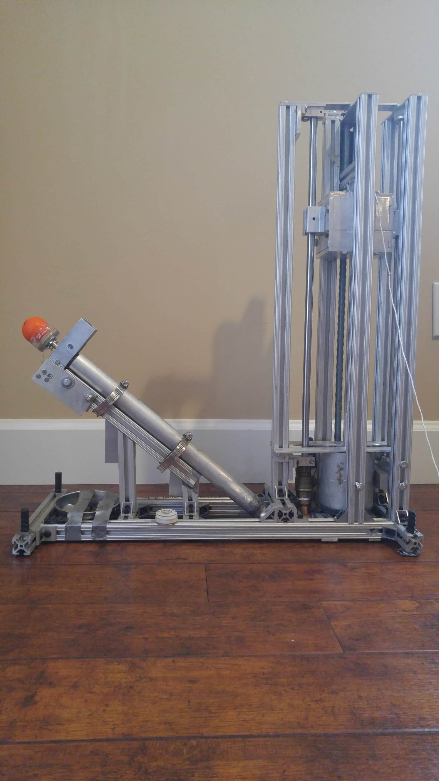 Wow! That's an awesome looking machine. I can't help but think, "is that a bit over-engineered?" but your success at Nationals seems to indicate it was engineered just the right amount. Curious about two things - 1) how heavy is it? It looks intimidating! 2) How did you make the adjustments between shots? Does that thick threaded rod allow you to precisely raise or lower the falling mass?DoctaDave wrote:Hey everyone!