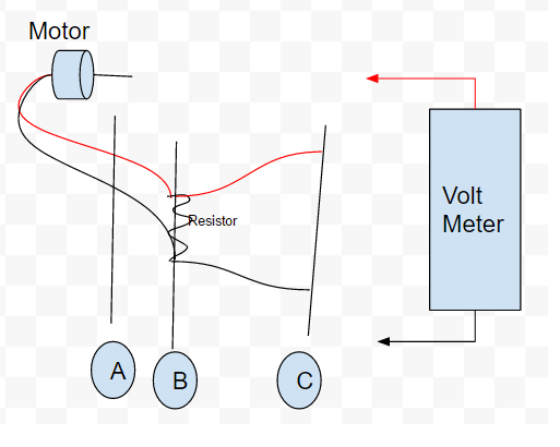 Any will work since the voltmeter takes negligible current, but I normally use position B.soyuppy wrote:In the diagram below, where does the Volt Meter probe goes? A, B, C? or does it matter?