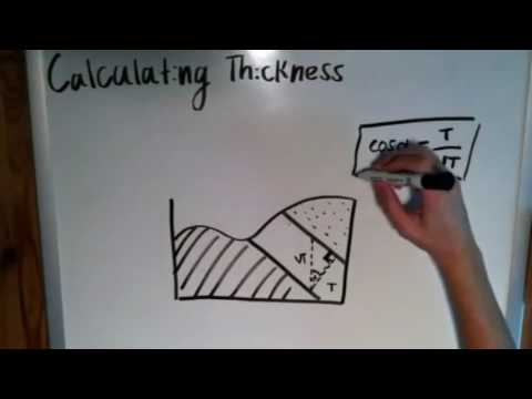 It's best to just use trig instead of trying to apply an equation in that scenario in my opinion. Other equations would apply if other angles/lengths were given.l0lit wrote:I've seen that there is some discussion on the concept of bed thickness. The only scenario I've seen so far is where T = V cos d where T is true thickness, V is vertical thickness, and d is the angle of dip (as found in this scenario. Are there any other scenarios where the other equations (such as T = V cos d - H sin d ) come into play?