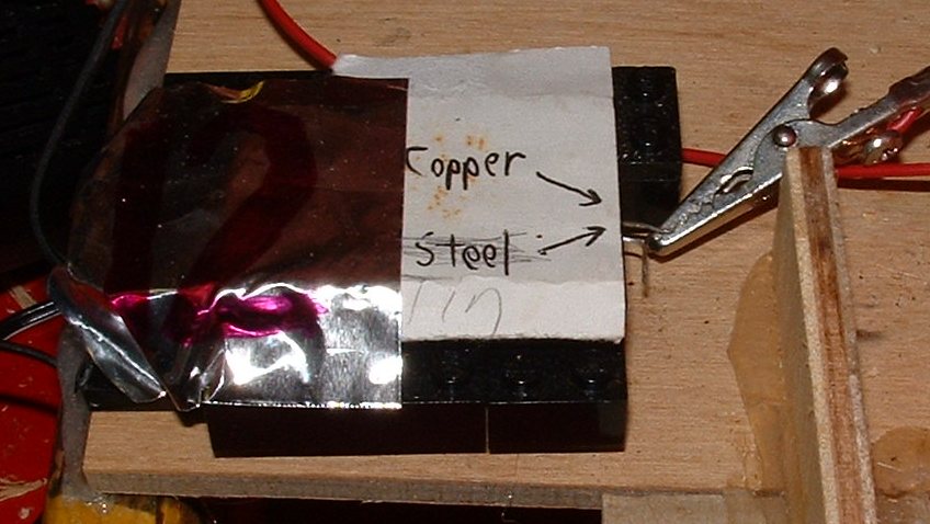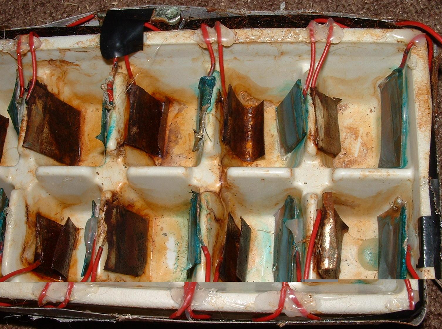 | 11 | Anode, cathode, and vinegar react | Chemical | 10 | A vast improvement over the 2003 Mission, I used an ice cube tray with copper and zinc metal strips. I believe each side was in series with itself and in parallel with the other side. Regardless, it generated enough current to power the LED featured below. | ||