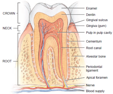 - The crown is the upper surface of the tooth. Bumps on the crown are called cusps.