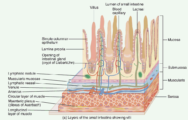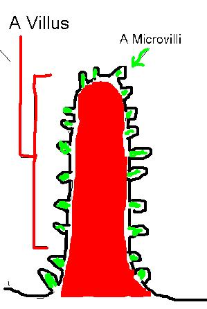 Since digestion only occurs at the surface, there must be a lot of surface area for effective digestion. To increase surface area,the small intestine has circular folds, villi, and microvilli. Villi are tiny finger-like projections. Microvilli are even smaller finger-like projections that are on the villi.