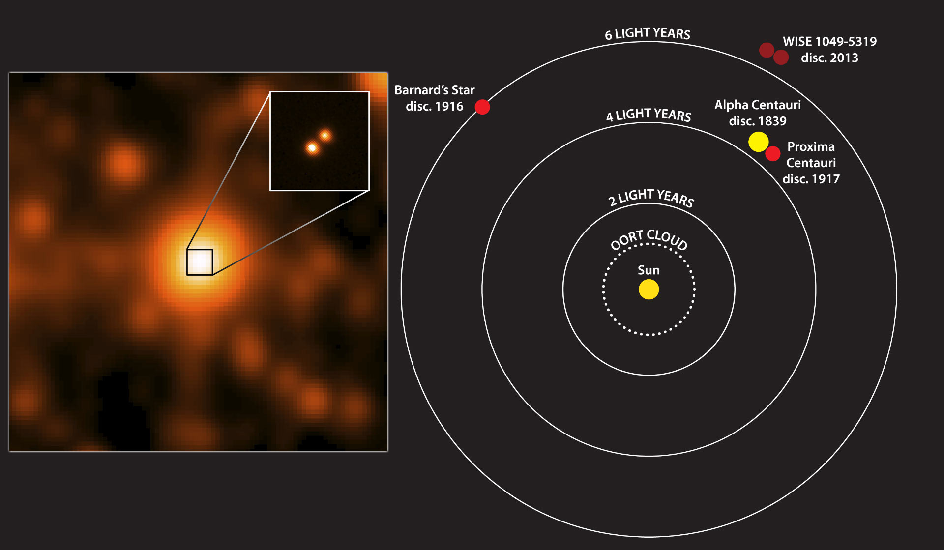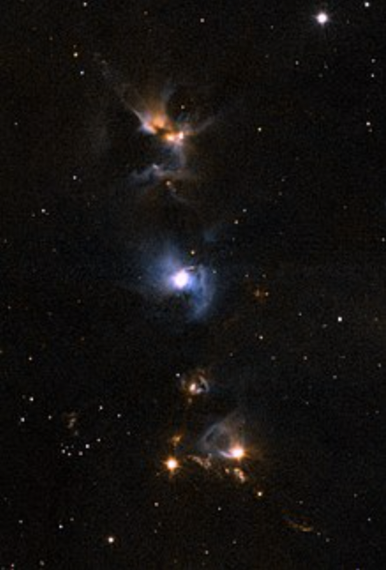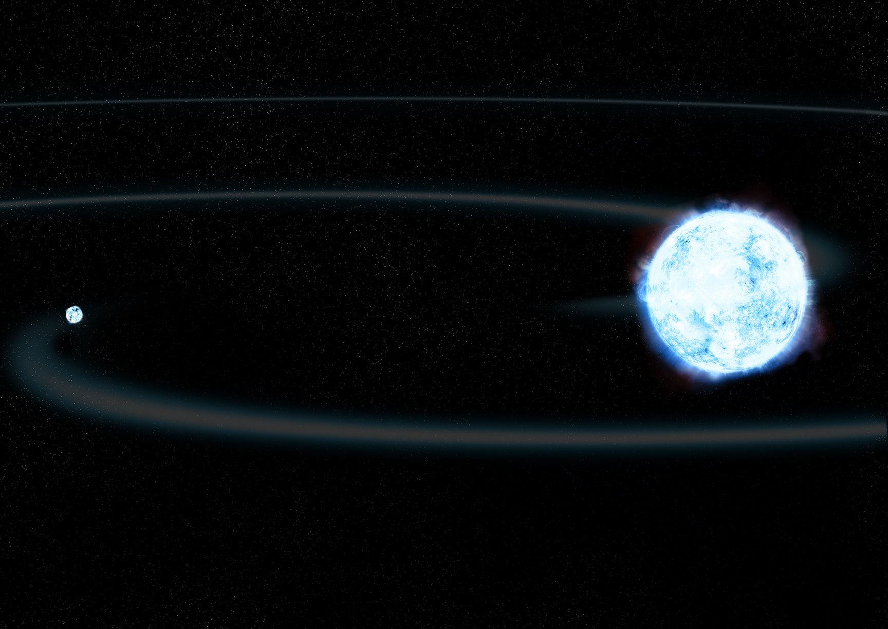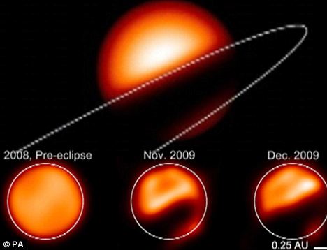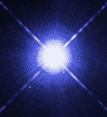 | Epsilon Aurigae is an eclipsing binary. One part is a white giant, and the other appears to be a star shrouded by a dark cloud of dust. In the middle of this cloud, there is a clearing where the star probably is, so during an eclipse, the system appears momentarily brighter as this clearing passes over the giant. An observation project of Epsilon Aurigae took place from 2009-2011.