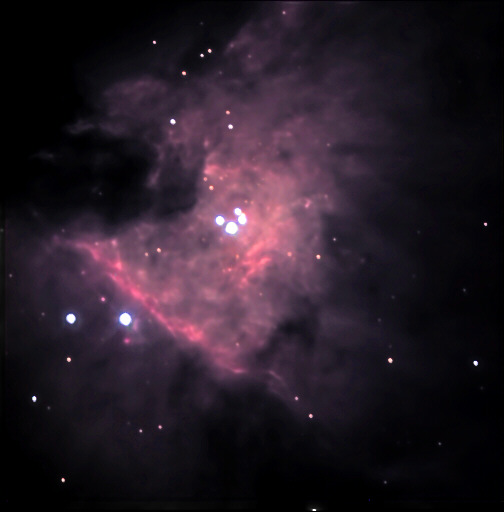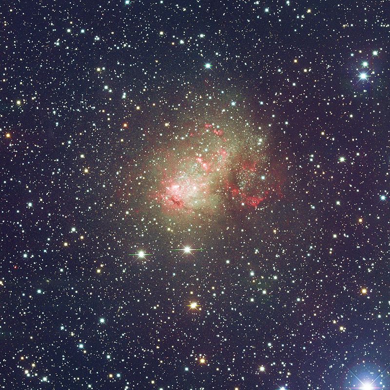 | a large spiral galaxy in close proximity to two other galaxies. This trio of galaxies is named the NGC 7771 group after its largest member, a spiral, the three galaxies, NGC 7769-7771, have passed by each other closely and will eventually form one huge galaxy. It is considered an accurate representation of the formation of the Milky Way. Dusty nebulae in front of the group obstruct clear viewing.