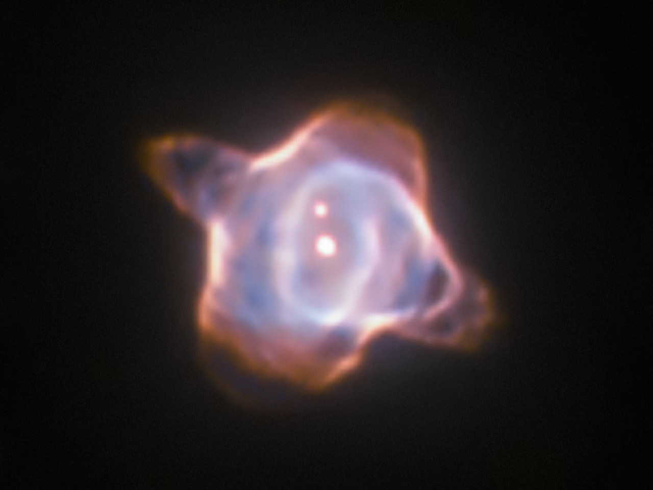 | 3C 321 is a binary system of galaxies. One of the galaxies is directing a large jet of energy at its companion. It is nicknamed the “Death Star Galaxy” and it is theorized that the galaxy with the jet contains a supermassive black hole. It was discovered in 2007.