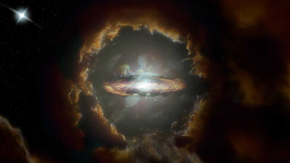 | One of the nearest and brightest galaxies containing a supermassive black hole. Million-mile per hour wind from the black hole shapes the galaxy.