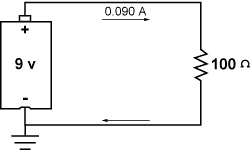 Take a look at this circuit - the voltage of the battery is 9 volts, the resistor has a resistance of 100 ohms, so by Ohm's Law, the people who made the picture know that...