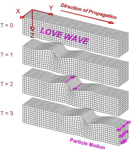 - Love Waves: waves that move in side to side, horizontally. Love waves cause the most damage.