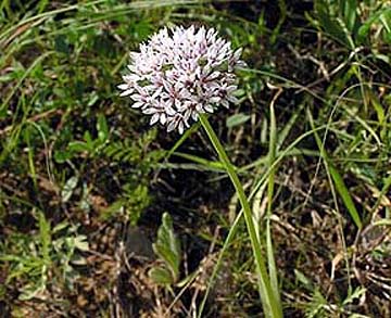 - The narrow, grass-like leaves originate near the base of the stem, which is topped by a dome-like cluster of star-shaped, pink or white flowers.