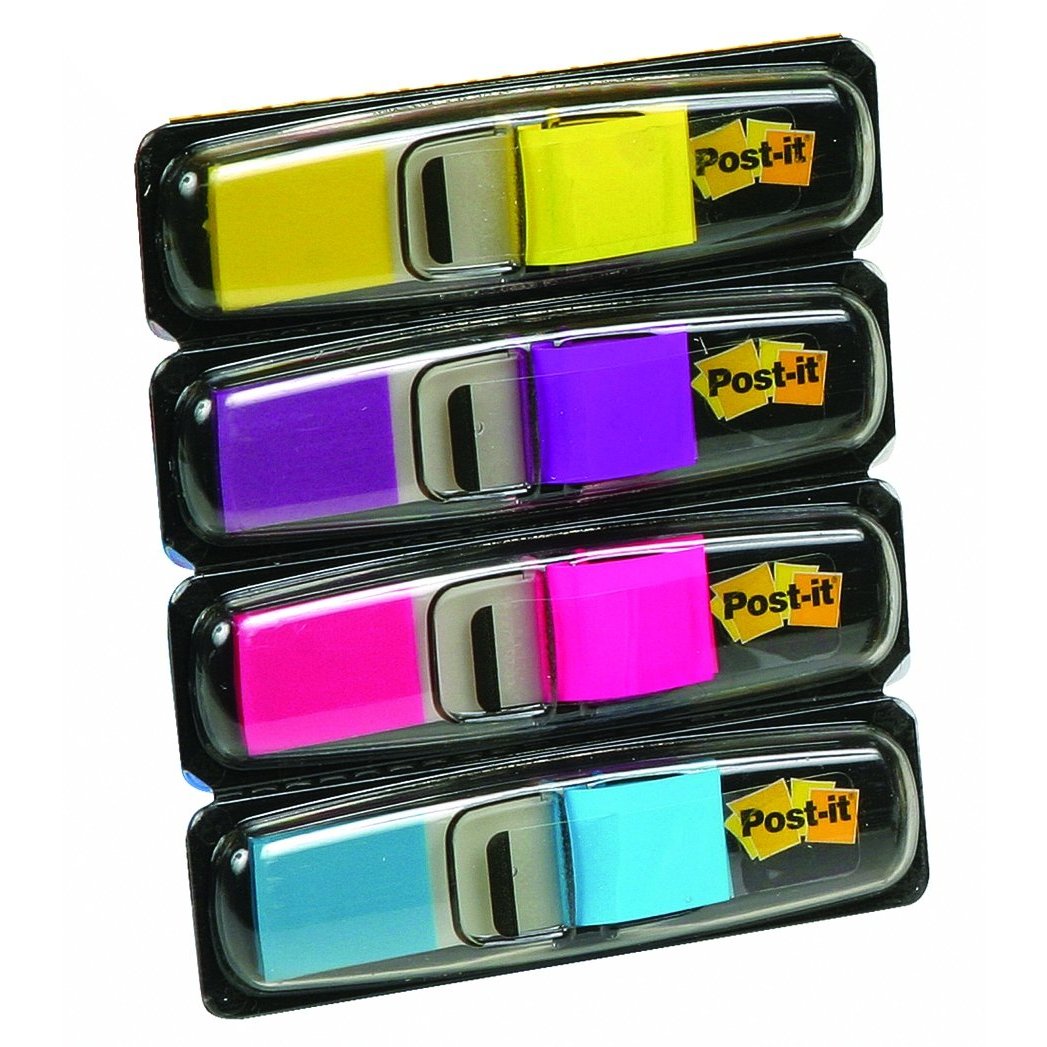 Flags are similar to sticky notes in that they also have a small strip of adhesive on one side. However, flags are usually smaller and thinner. They may be made of paper or a thin, transparent plastic. Plastic flags are typically very robust and good for quick page turns. They come in a variety of sizes, with thin flags being good for marking smaller sections and large rectangular flags being good for marking important information. Larger plastic flags are typically stiffer than smaller or paper flags.