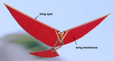 The simple "membrane" type of ornithopter wing is the most commonly used. It consists of only a balsa leading spar and a wing membrane in the shape of a half circle from lightweight covering. The membrane portion of the wing will passively lag behind the rigid wing spar. When the wing is going up, it will also tilt upward. When the wing is going down, it will angle downward. This is called the twisting of wings.