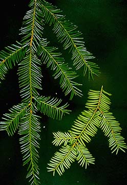Needles are flat in cross section and white-lined on both upper and lower surfaces.