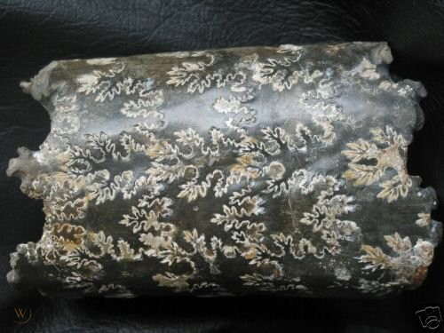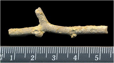 | Physical Description | It was a fenestrate bryozoan that was much wider in life than it seems from the fossil. Individual animals are called zooids. Fossils are ~2 cm long and a few millimeters wide. In life, it had calcified tissue that held the edge of the lacy colony with the axis usually preserved alone. It has a mesh skeleton thickening into a corkscrew center. Most remains are fragments of mesh (this makes the corkscrew). Whole specimens are rare. Individuals live on 1 side of the mesh. |