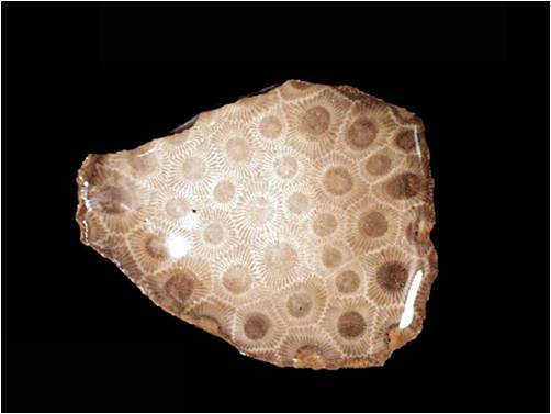 | Physical Description | They form colonies of hexagonal cells (corallites), with a calcite skeleton. They have well-developed horizontal internal partitions (tabulae) within each cell, but reduced or absent vertical internal partitions (septa). They vary in shape with their platforms usually straight and complete. Tabulate corals also display radial symmetry, and the septa, if present, are always very short and prickly. |