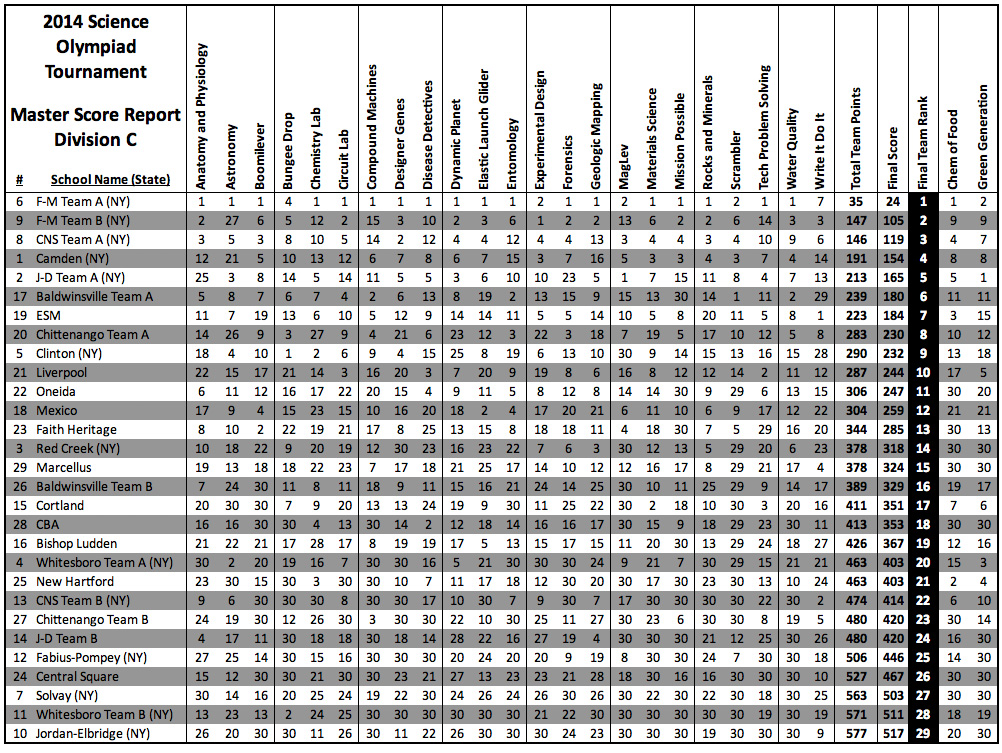 - 4 A second team from Fayetteville-Manlius High School finished second with 105 points.