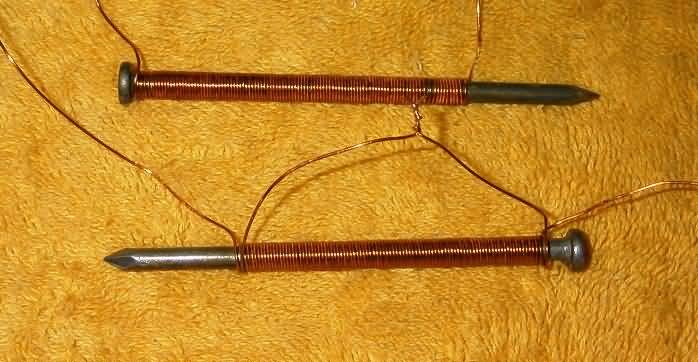 Electromagnets are a type of magnet that can be made by wrapping a nail or other iron rod with wire. The magnetic field in electromagnets is created by electric current aligning domains the the wire. The strength of the magnetic field, therefore, can be controlled by the amount of electric current applied.