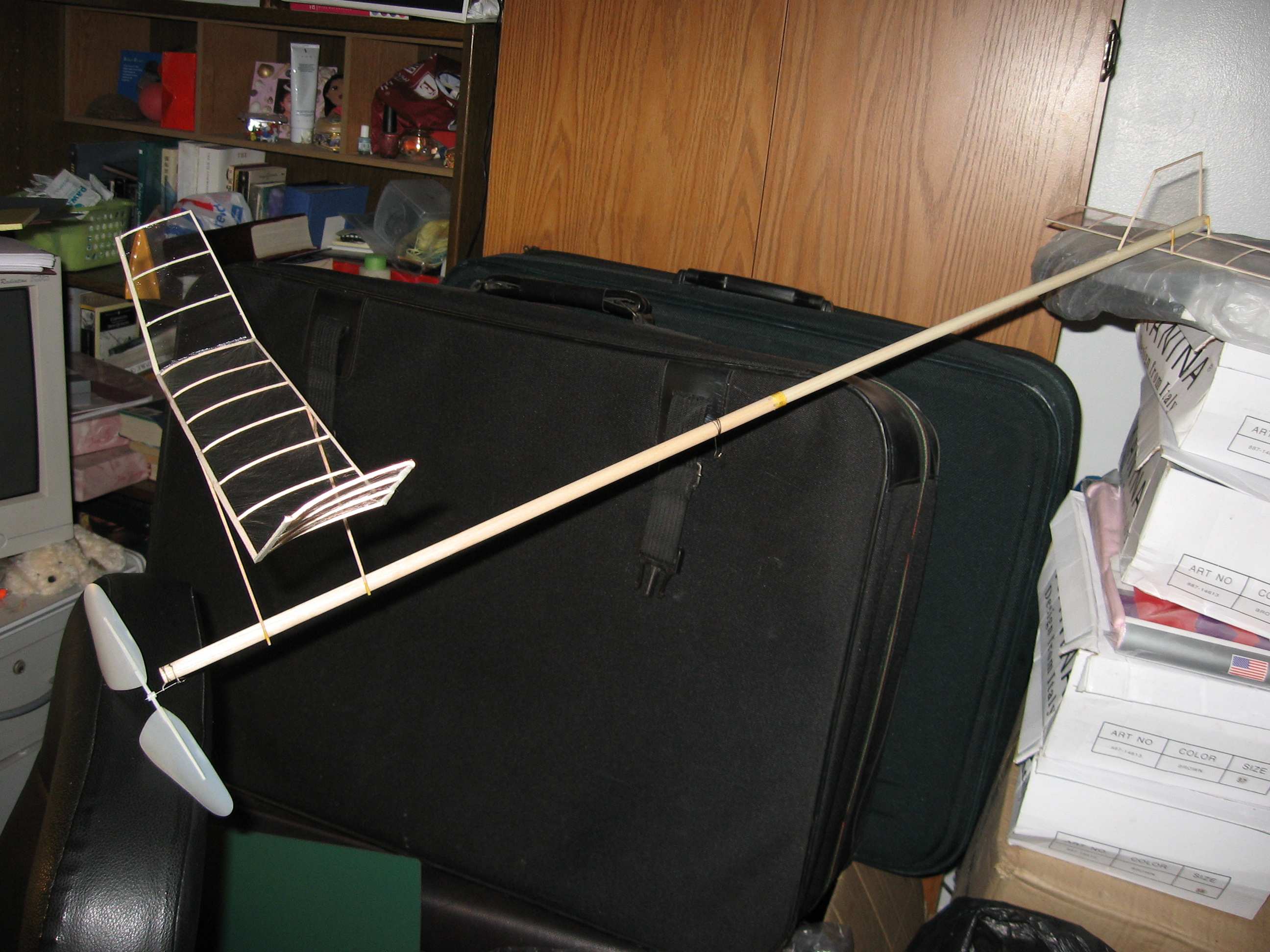 - The "tail" of the plane. This is another length of solid balsa, usually lighter than the MS and sometimes tapered to save weight, or a thinner, lighter balsa tube, which can be tapered as well, but usually not worth the effort. The boom serves to support the vertical and horizontal stabilizers. Since it doesn't have to support the rubber, it is usually lighter and weaker than the motorstick.