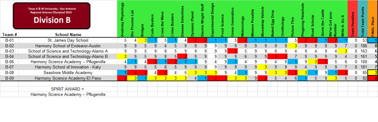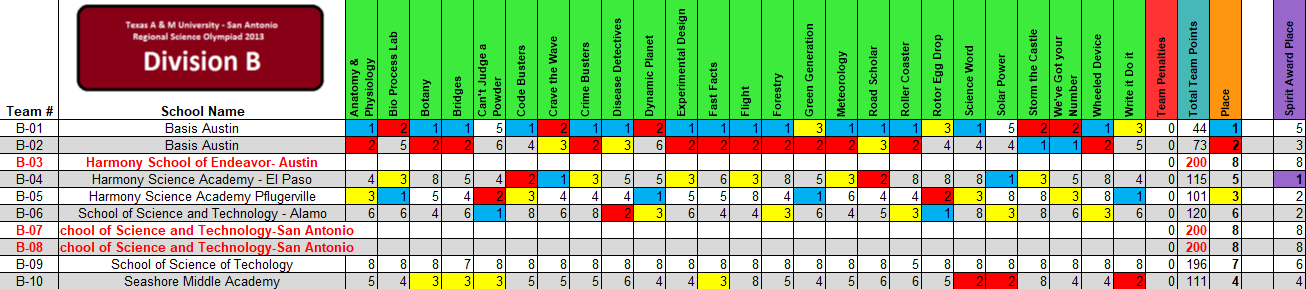 Texas features open regionals, so teams may attend any regional they wish. More information on Texas Science Olympiad can be found here