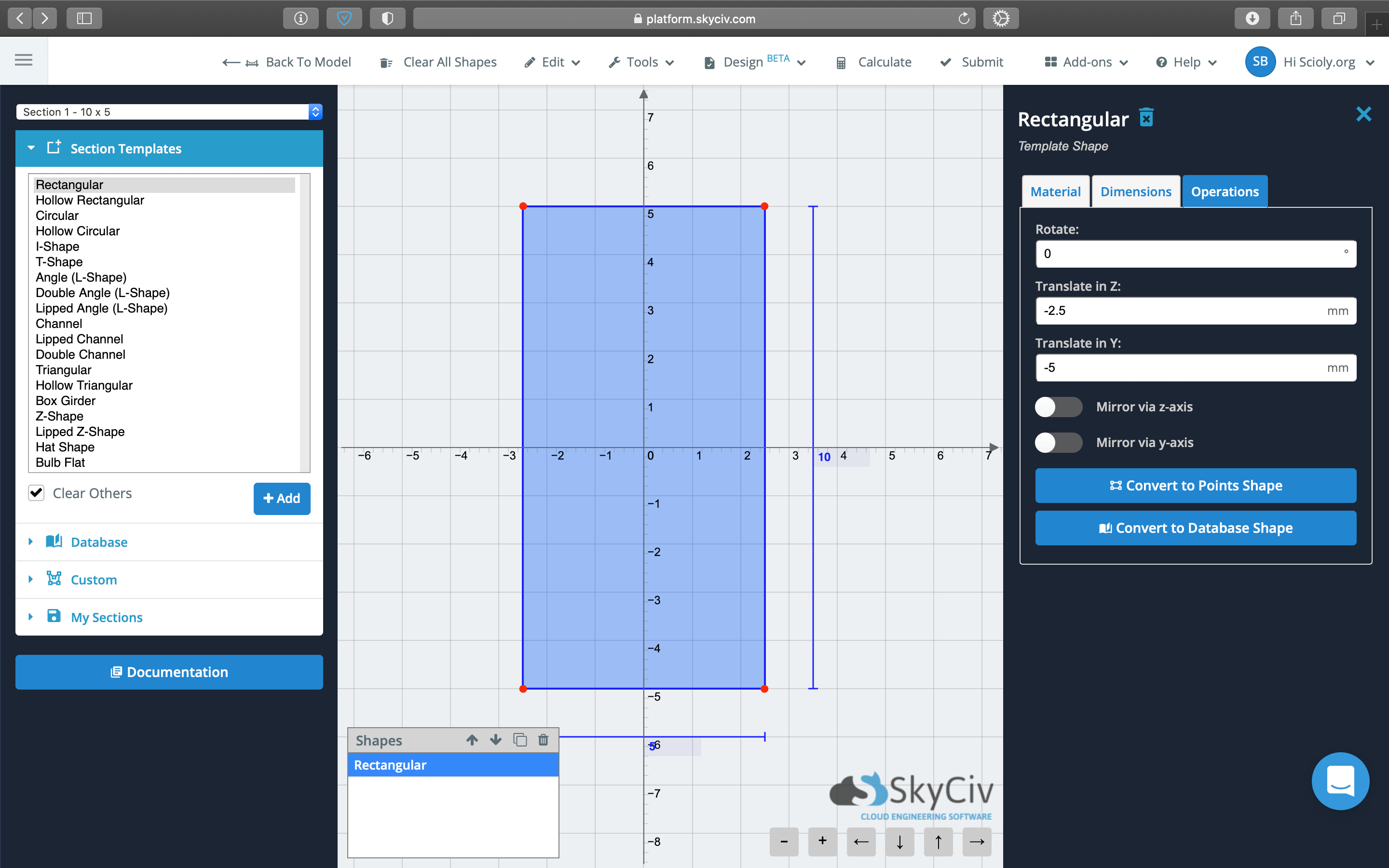 While SkyCiv recommends defining nodes, members, supports, sections, then loads, you could choose to define sections first as that allows you to know exactly where your nodes need to be to avoid touching below the Contact Depth Line. Or you could define nodes first, knowing that you might need to adjust their positions later as you experiment with section sizes.