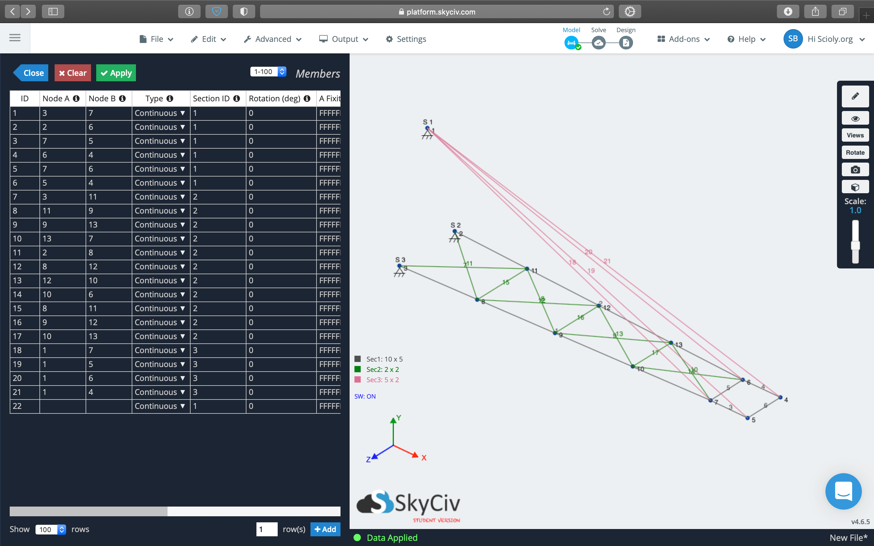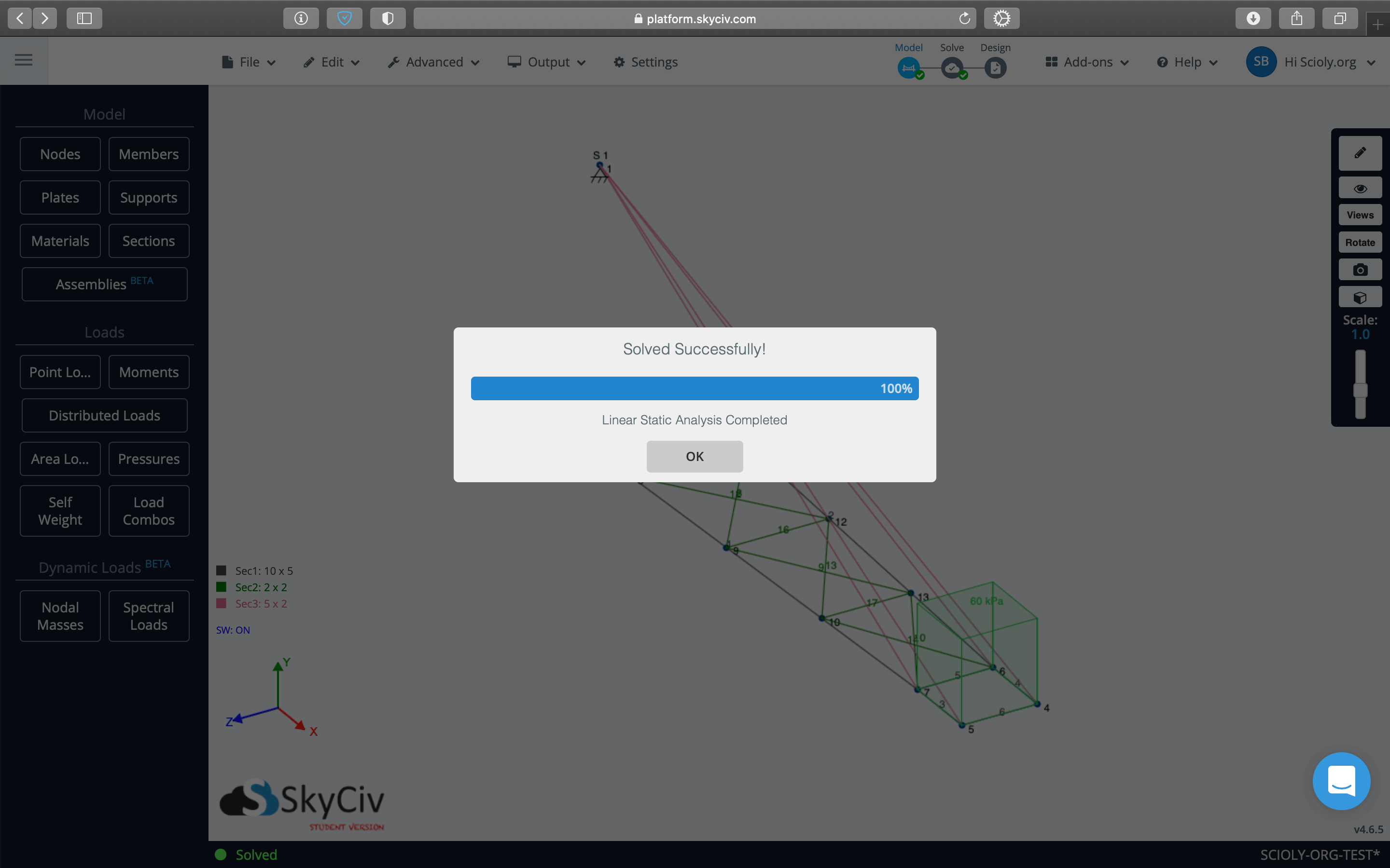 SkyCiv is available via a 14-day free trial with a newly registered account or a paid license at $10 per month for a 6-month student license. However, with the free trial, you may be limited to a small number of members that is not enough to build a complete Boomilever.