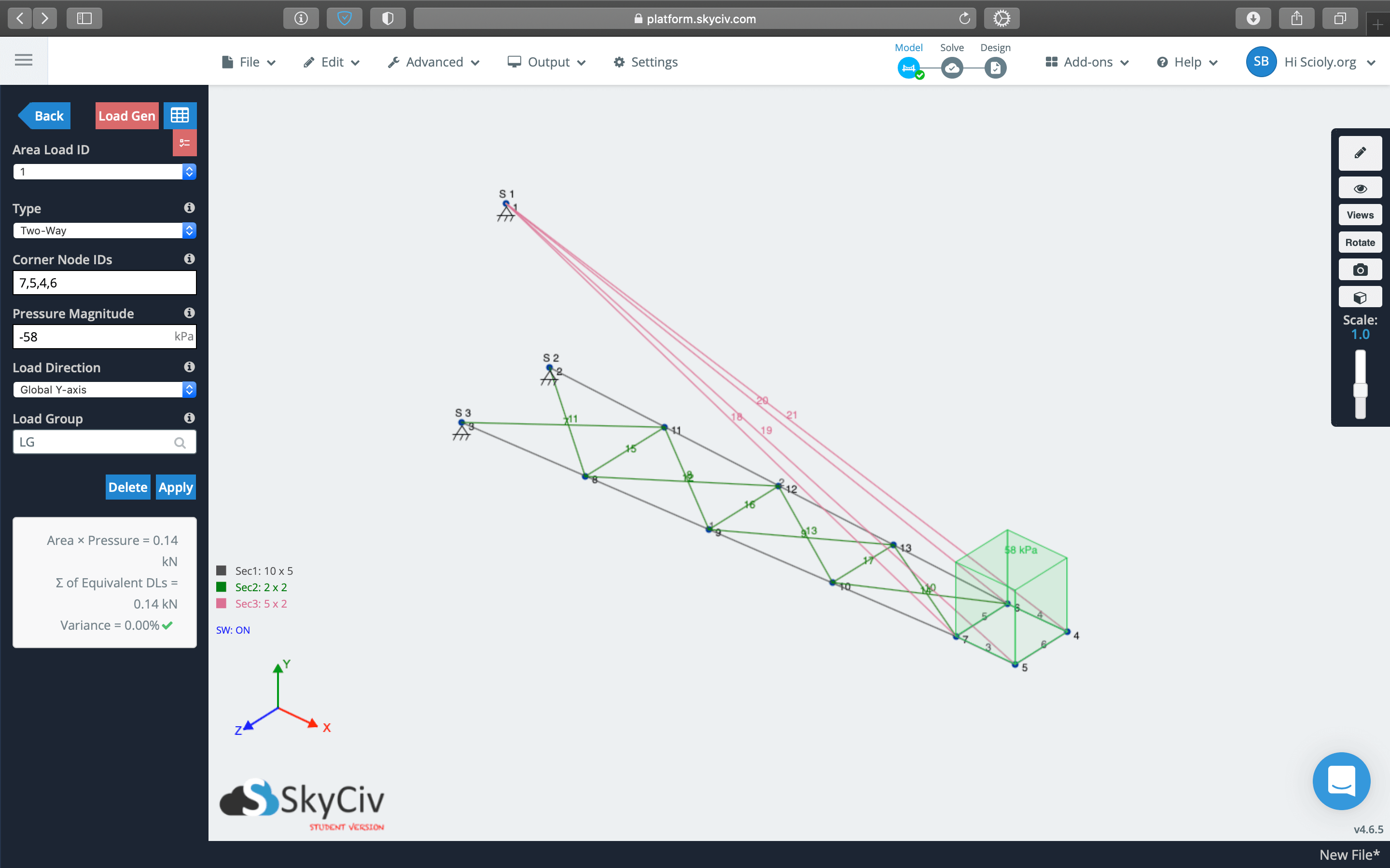 For more detailed information, refer to SkyCiv's Video on getting the Area Load Variance to 0%. There could be other causes of a nonzero area load as well, so the best way to avoid this issue during a competition is by testing the base design beforehand.