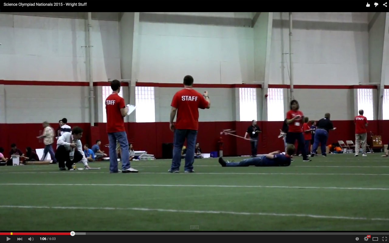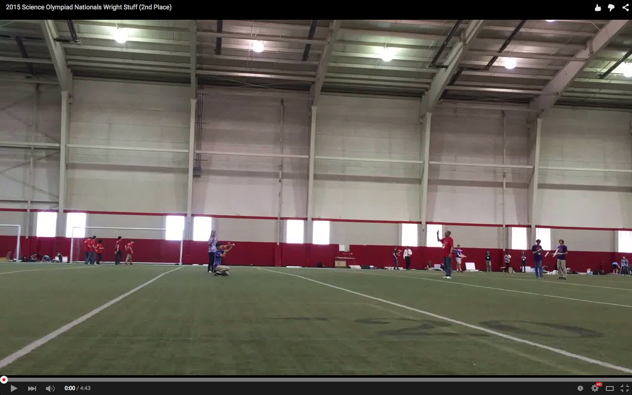 This video was submitted by DoctaDave, who competed for Mira Loma High School (CA). This plane had the color bonus but no wing bonus, and had a raw time of 4:37.82. Link to video.
