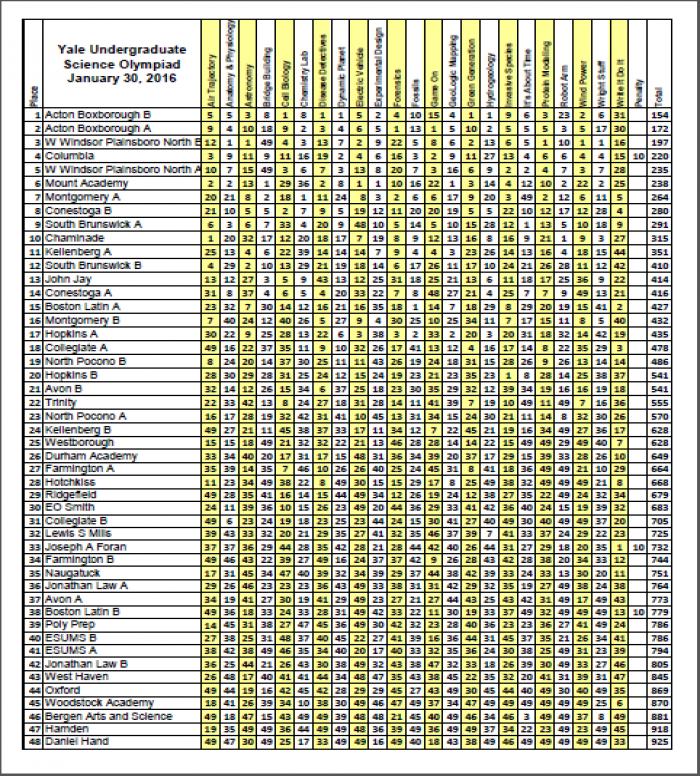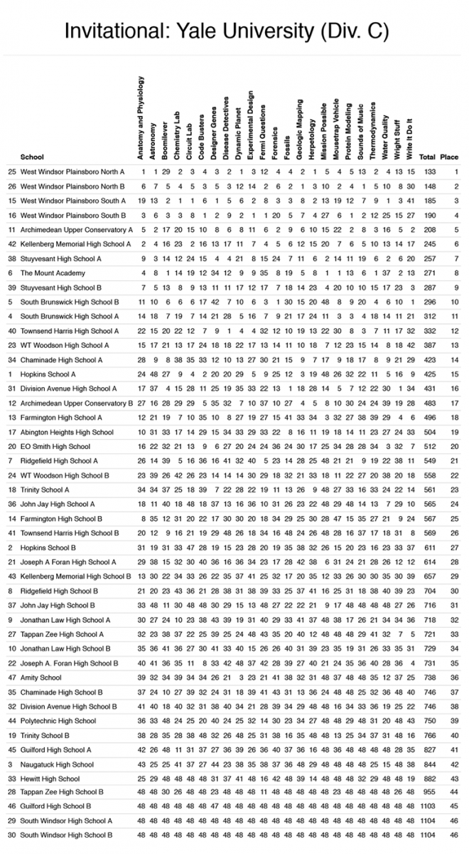 Yale Invitational Division C 40 teams
